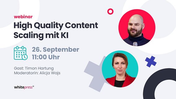 In diesem Webinar erhältst Du wertvolle Einblicke in die besten Praktiken für den effektiven Einsatz von KI zur Content-Erstellung, von der Planung über die Qualitätskontrolle bis hin zur Optimierung für Suchmaschinen.
