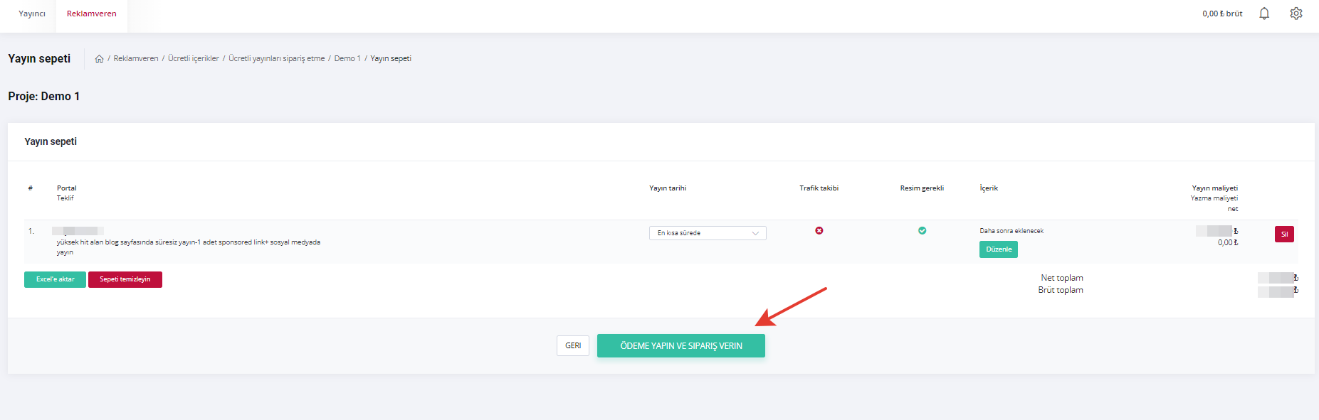 Her şey tamam. Siparişi tamamlayın bölümüne geldiğiniz zaman siparişinizi editleyebilir ya da ileriki bir tarihte yayınlanmak üzere sipariş de verebilirsiniz. Ödeme yapın ve sipariş verin butonuna tıkladıktan sonra ödeme aşamasına geçeceksiniz.